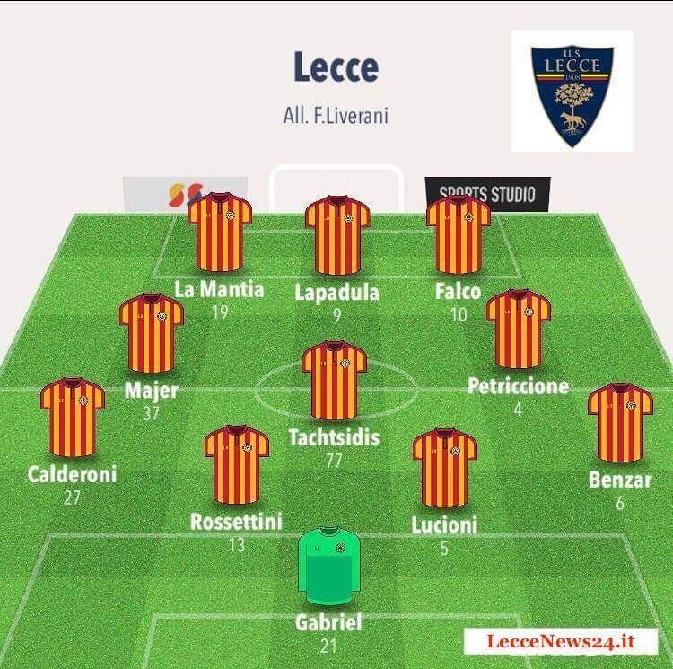 Davanti a Gabriel, quindi, spazio a Calderoni e Rispoli (insediato da Benzar) sulle corsie esterne, con Lucioni e Rossettini nel cuore della difesa; Tachtsidis sarà il metronomo della manovra, affiancato da Petriccione e Majer. Dubbio trequartista: Mancosu e Shakhov sono arruolatili, ma sono in notevole ritardo di condizione. Ecco allora che il jolly potrebbe essere proprio Filippo Falco, il quale potrebbe agire ora da supporto alle punte, ora da esterno nel tridente insieme a La Mantia e Lapadula.