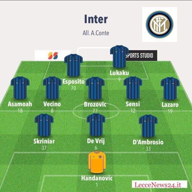 E allora, 3-5-2 con Handanovic in porta, D’Ambrosio, De Vrij e Skriniar in difesa; folto centrocampo formato da Lazaro, Sensi, Brozovic, Vecino e Asamoah, in avanti la coppia Lukaku-Esposito (e Lautaro).
