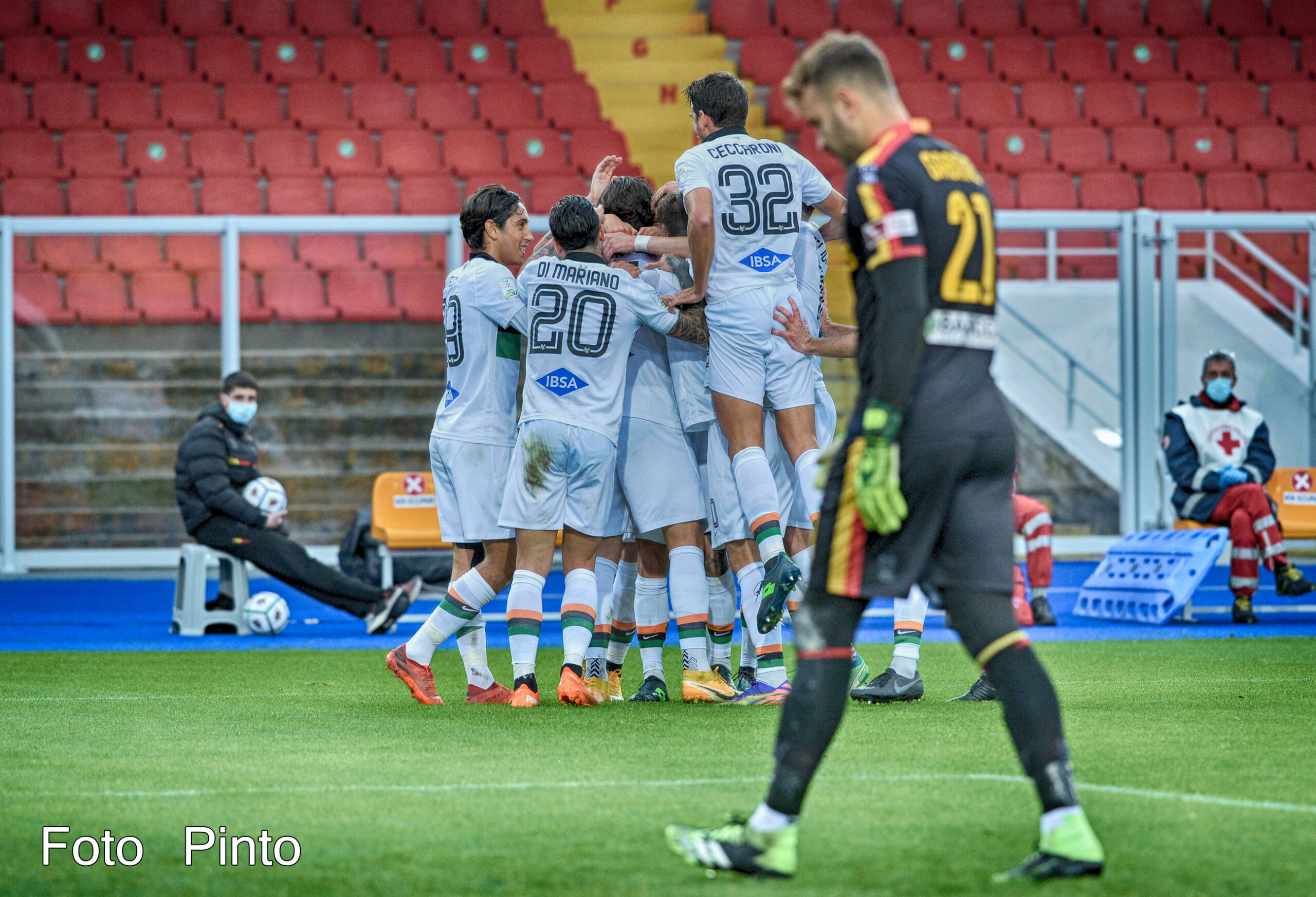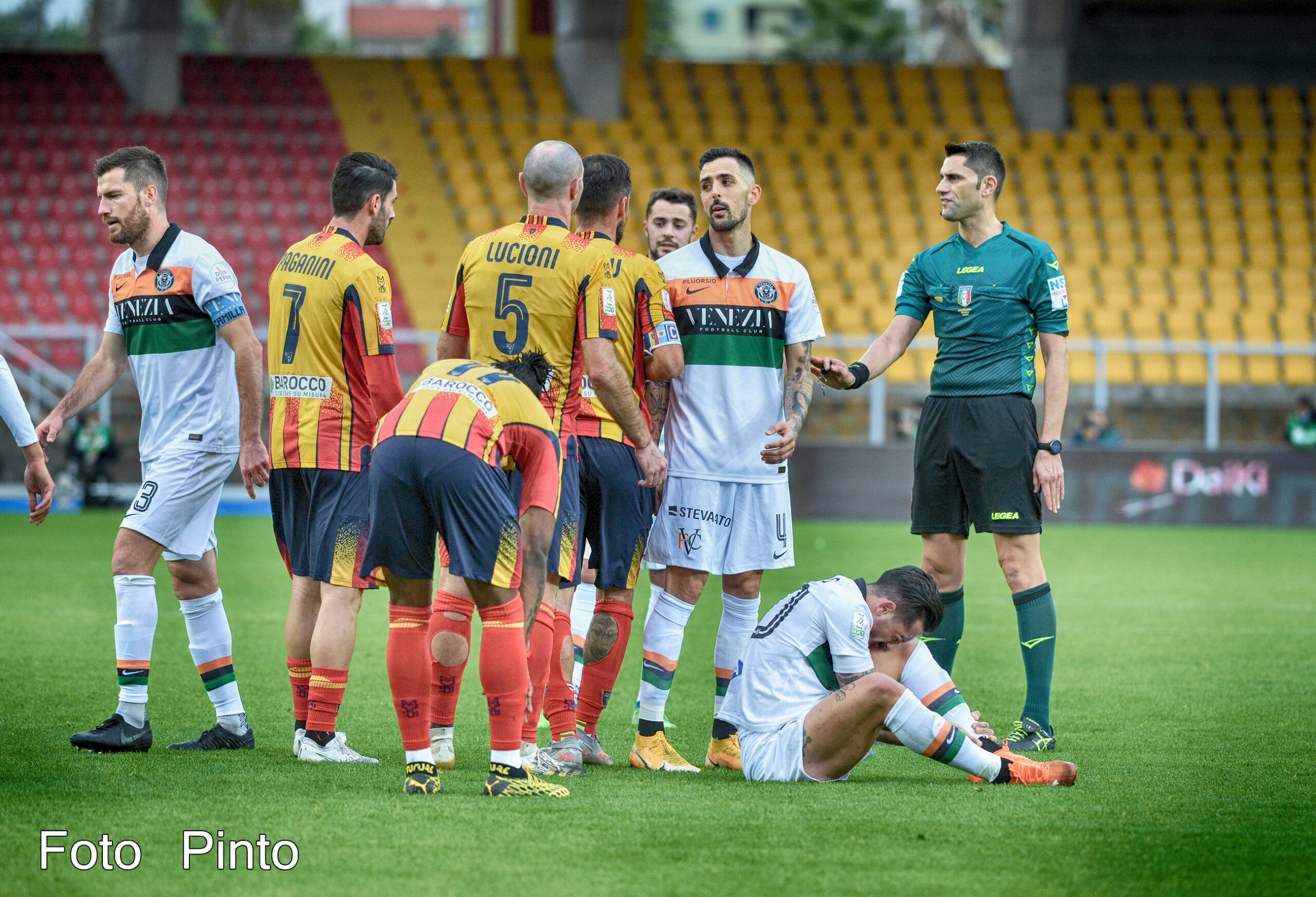 Poi i giallorossi calano il ritmo, il Venezia alza la qualità nel palleggio e bomber Forte nel giro di sei minuti firma la rimonta. Nella ripresa il copione fatica a cambiare e solo quando viene gettato nella mischia Pippo Falco (al minuto 66), l’inerzia torna a totale appannaggio dei padroni di casa che sfiorano il gol in più riprese fino a trovare il definitivo 2-2 sull’invenzione, appunto, di Falco che pesca egregiamente Coda in area di rigore.