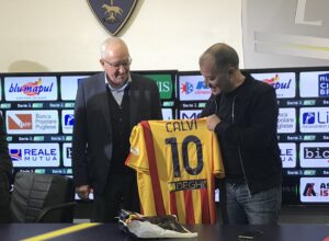 La maglia nr. 10 in dono, quella dei fuoriclasse, un omaggio simbolico per un professionista che per decenni ha raccontato le gesta dei giallorossi. Prima dell’intervista all’allenatore la società di “Via Colonnello Costadura”, ha voluto omaggiare Giuseppe Calvi, storico giornalista leccese della Gazzetta dello Sport che va in pensione.