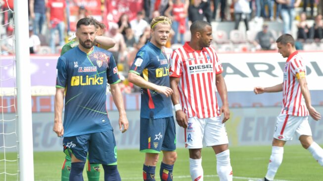 Al 69mo arriva il meritatissimo vantaggio giallorosso. Ripartenza dei salentini, Strefezza prende palla, arriva al limite dell’area e con un sinistro rimpallato da un difensore trafigge l’estremo difensore dei biancorossi.
