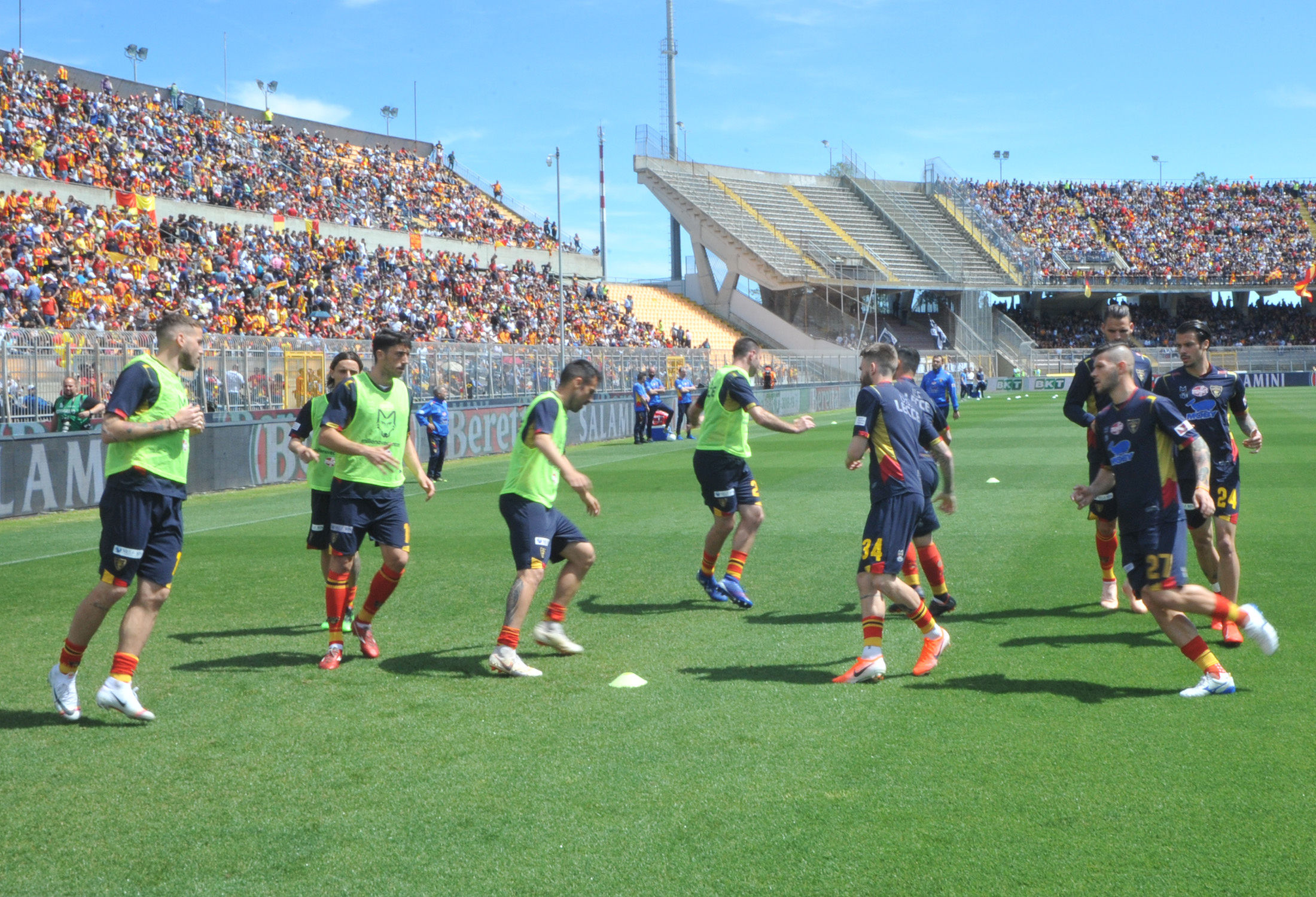 L’ingresso in campo della squadra al momento del riscaldamento: un boato accoglie Capitan Mancosu e compagni, di sottofondo gli ACDC che suonano la carica. In avvio di gara lo Spezia preme, ma è il Lecce a sbloccare le sorti: Petriccione mette la chiave nella serratura della porta che apre il paradiso, nel secondo tempo il solito La Mantia la spalanca definitivamente.