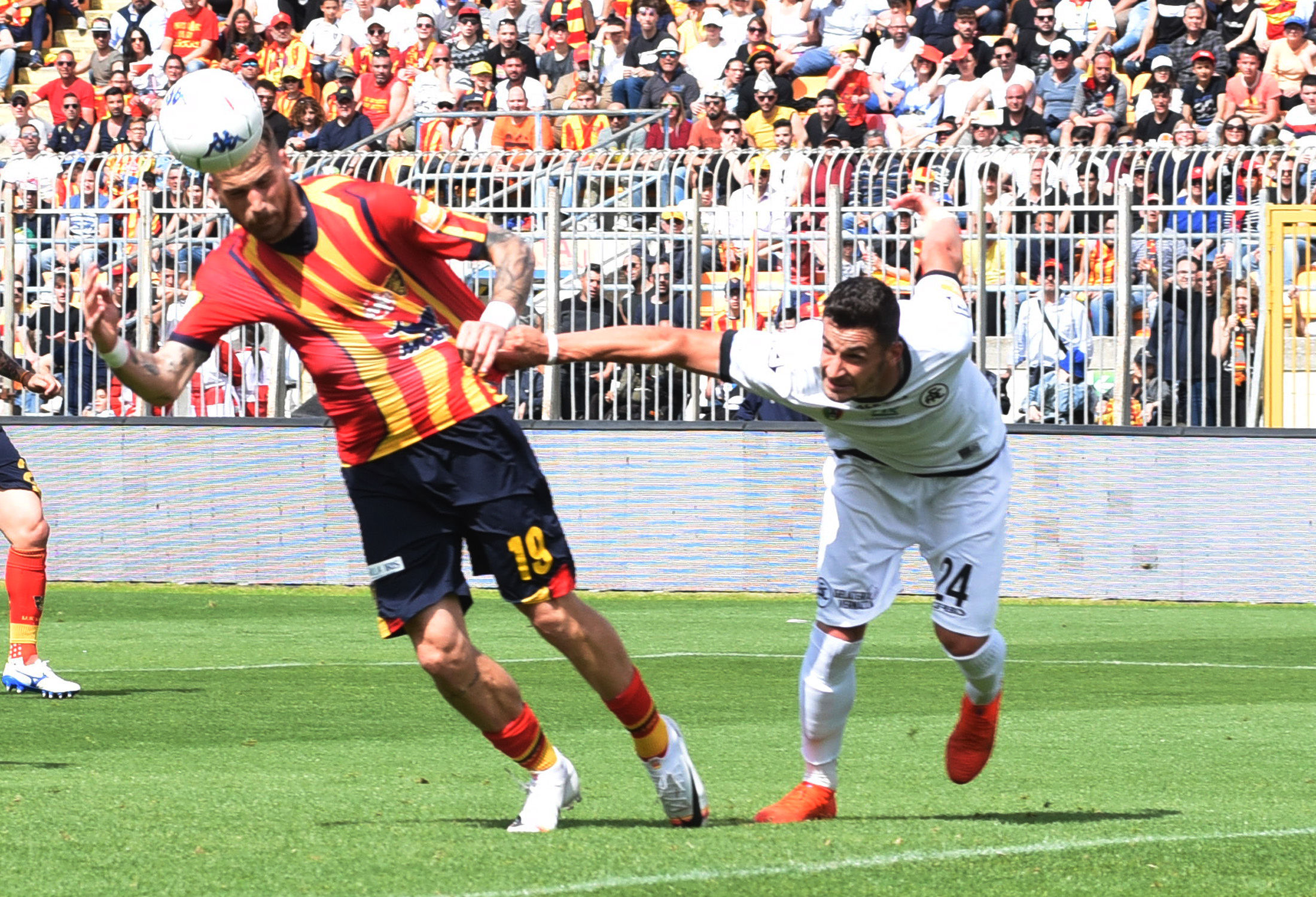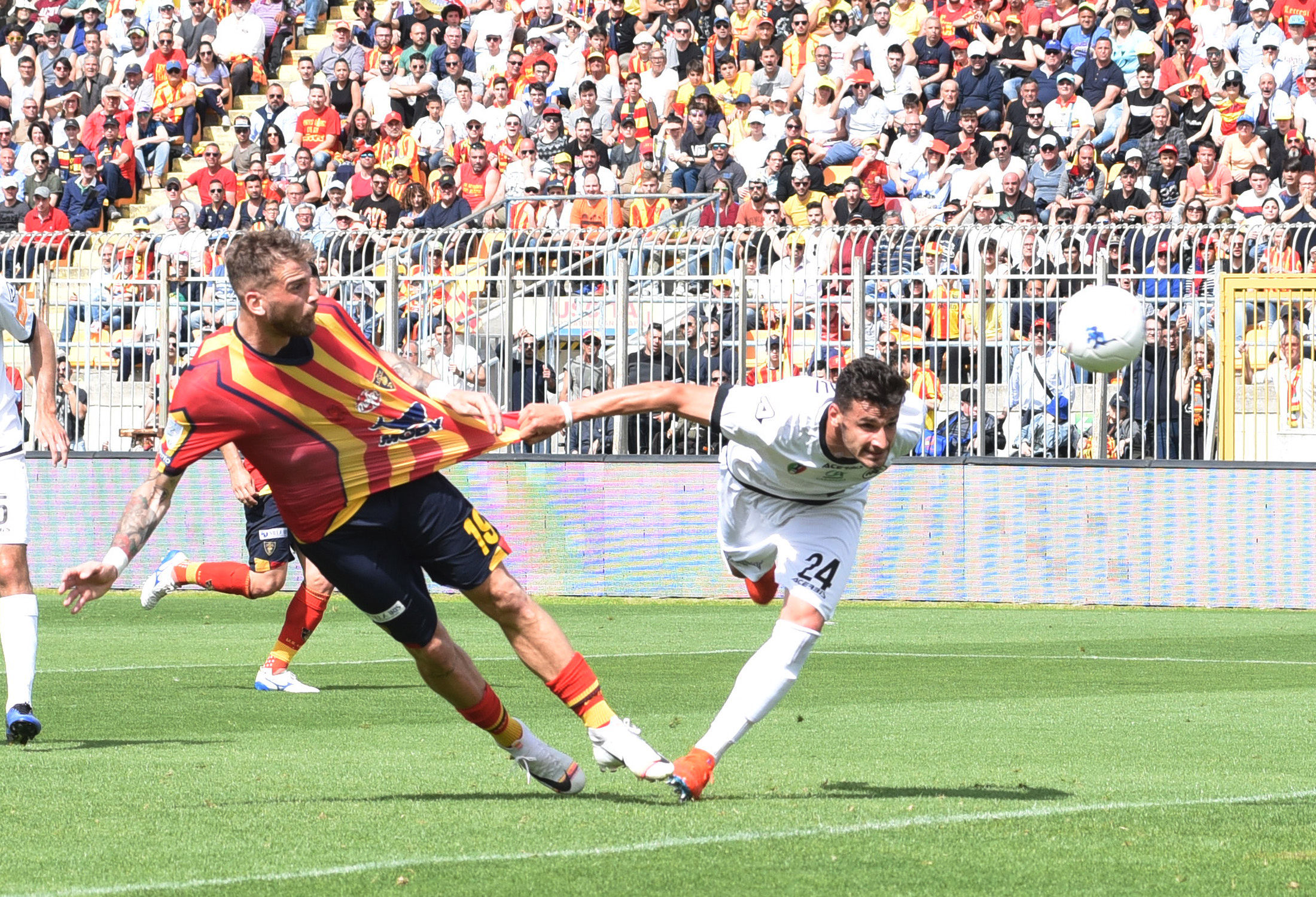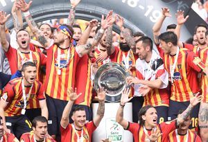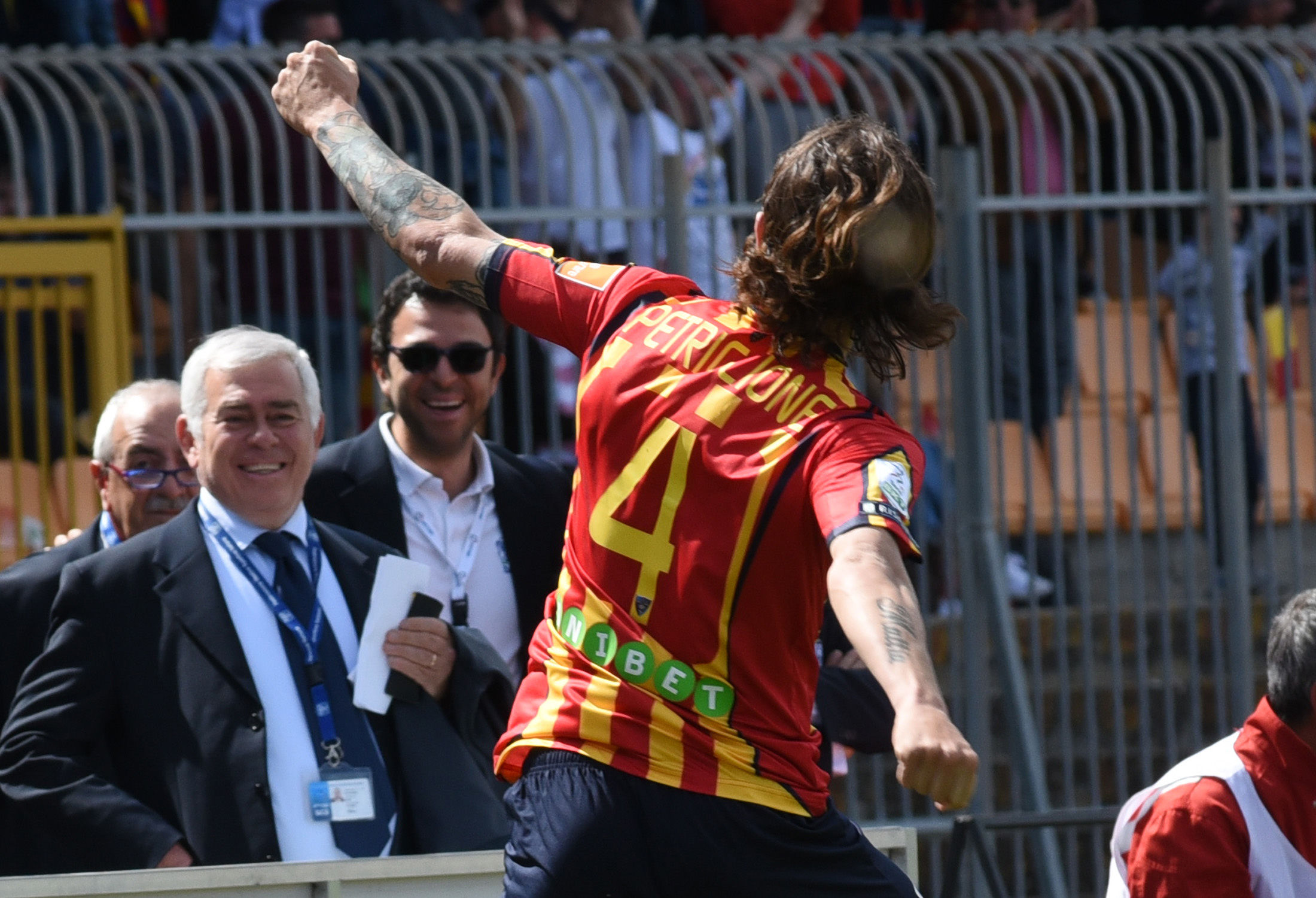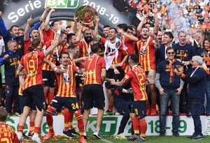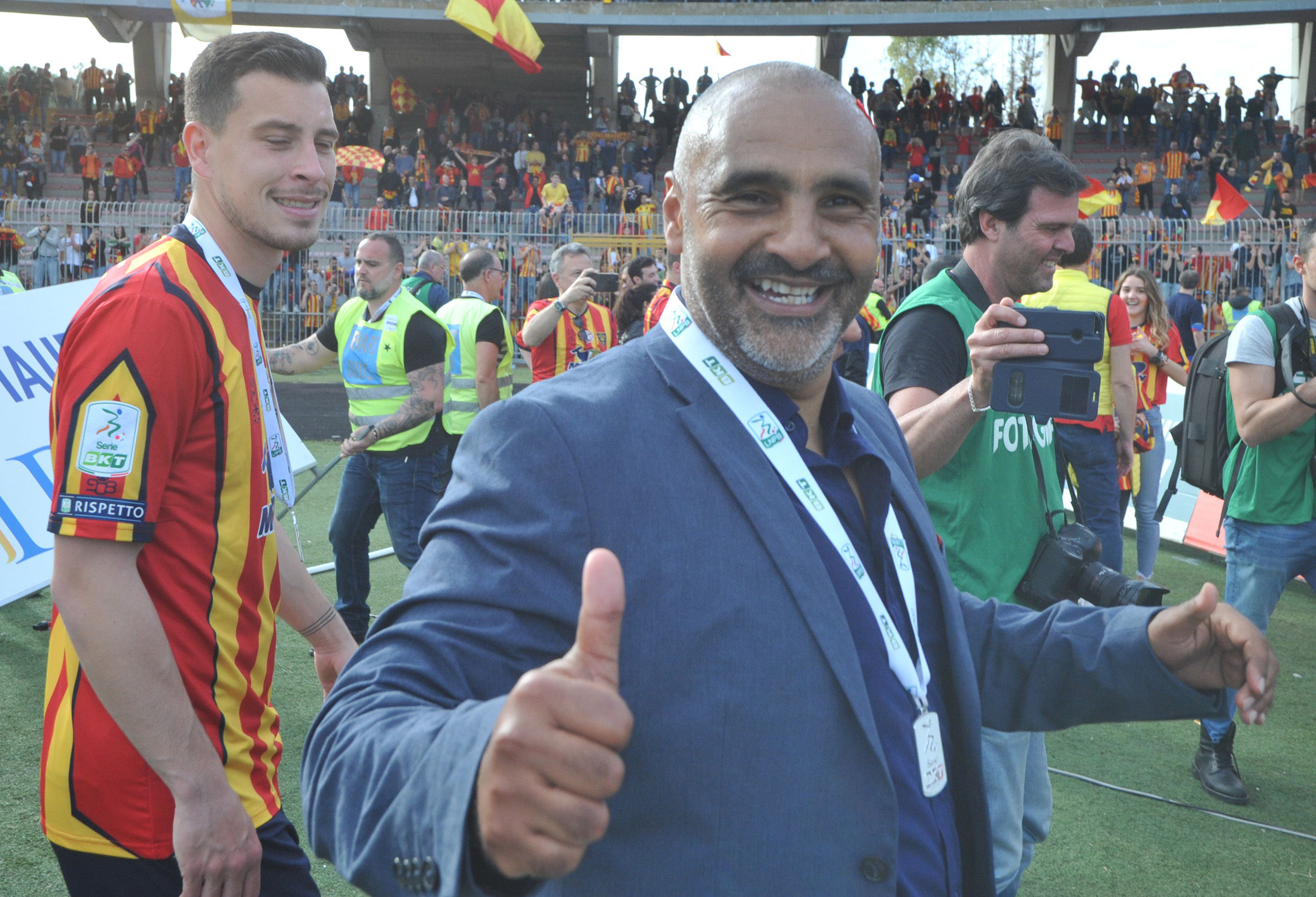 La giornata è iniziata molto presto, ore prima dal fischio d’inizio: la città si è svegliata trepidante, vogliosa di festeggiare un traguardo che sembrava solo un miraggio un anno fa, quando dopo 6 stagioni si salutava la Lega Pro. Alle ore 12 l’apertura dei cancelli dello stadio, tre ore prima del fischio d’inizio, con gli spalti gremiti con 30mila tifosi, riempitisi nel giro di pochi minuti.