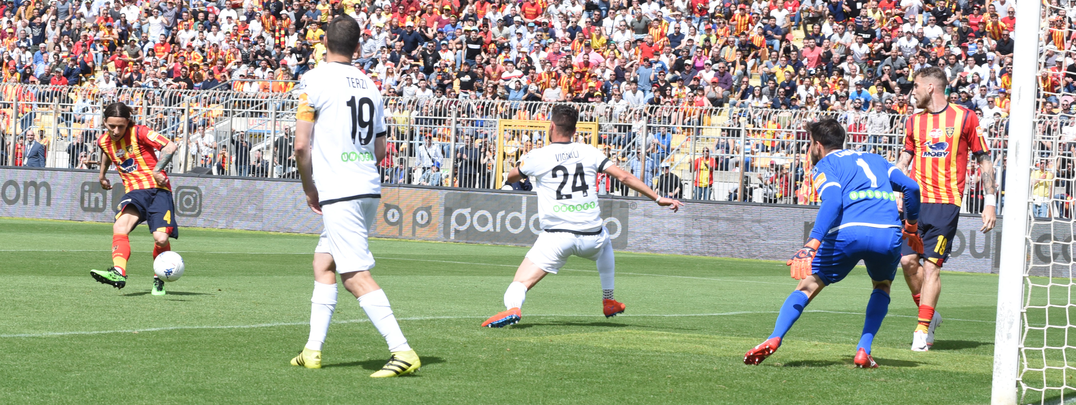 Da Palermo giunge la notizia del pareggio del rosanero contro il Cittadella, ma poco importa: il Lecce ha fatto il suo, senza pensare altrove. Si è conquistato sul campo una promozione diretta da incrociare come un’opera d’arte. E alla via alla festa.