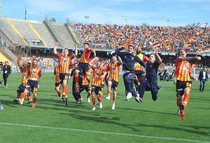 96 minuti, poi la grande festa in campo. E’ stato un pomeriggio memorabile quello di sabato 11 maggio allo stadio “Via del Mare”: il Lecce festeggia il ritorno in Serie A sette anni dopo l’ultima apparizione. Lo fa battendo nell’ultima gara decisiva uno Spezia che ha dato filo da torcere alla comitiva di Fabio Liverani, rendendo così l’impresa ancora più epica.