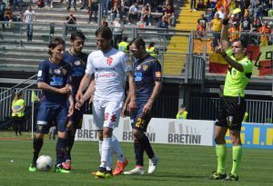 Al 79mo il tiro dalla distanza di Bovo finisce alle stelle. All’84mo Vigorito tiene a galla i gialloorossi. Baraye prende palla e supera il diretto marcatore e si presenta solo davanti all’estremo difensore dei Salentini, il portiere ex Frosinone mantiene la freddezza e riesce a parare il tiro dell’attaccante ex Parma.