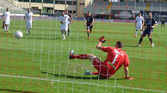 Al 74mo i giallorossi accorciano le distanze. Retropassaggio per il portiere Minelli, ma bomber La Mantia riesce a rubargli palla, l’estremo difensore biancoscudato altro non può fare che abbatterlo e per il direttore di gara è calcio di rigore. Sul dischetto si presenta capitan Mancosu che spiazza il portiere e accorcia le distanze.