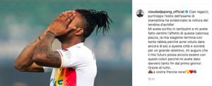La preparazione, quindi, riprende già questa mattina, con appuntamento sul campo di Acaya. All’orizzonte c’è l’anticipo contro l’Ascoli, ma in queste ore la notizia più brutta giunge da Claud Adjapong. Il terzino modenese è uscito anzitempo dal campo per un problema alla caviglia. Ebbene, gli esami strumentali svolti in mattinata hanno dato l’esito più nefasto: rottura del tendine d’Achille sinistro. Per lui stagione finita e un pensiero dello stesso giocatore postato su Instagram