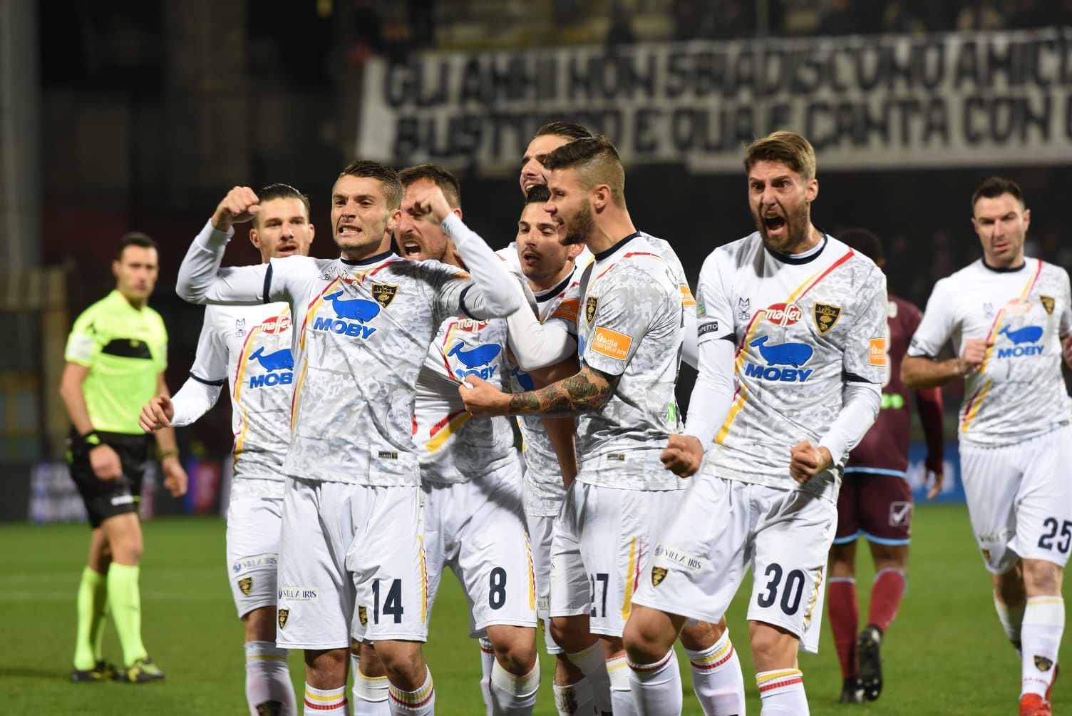 Grazie a un grandissimo primo tempo i giallorossi conquistano tre punti e si portano a – 3 dalla vetta (clicca QUI e leggi le pagelle). Avrebbe potuto dilagare la formazione di Liverani, ma un po’ di imprecisione e forse qualche scelta non propriamente giusta del direttore di gara hanno fatto sì che si soffrisse fino all’ultimo minuto. A ogni modo i salentini a parte l’apprensione nelle azioni campane, non ha mai corso grandissimi rischi e il successo appare più che meritato. Venerdì si torna in campo nell’anticipo del “Via del Mare” contro l’Ascoli.