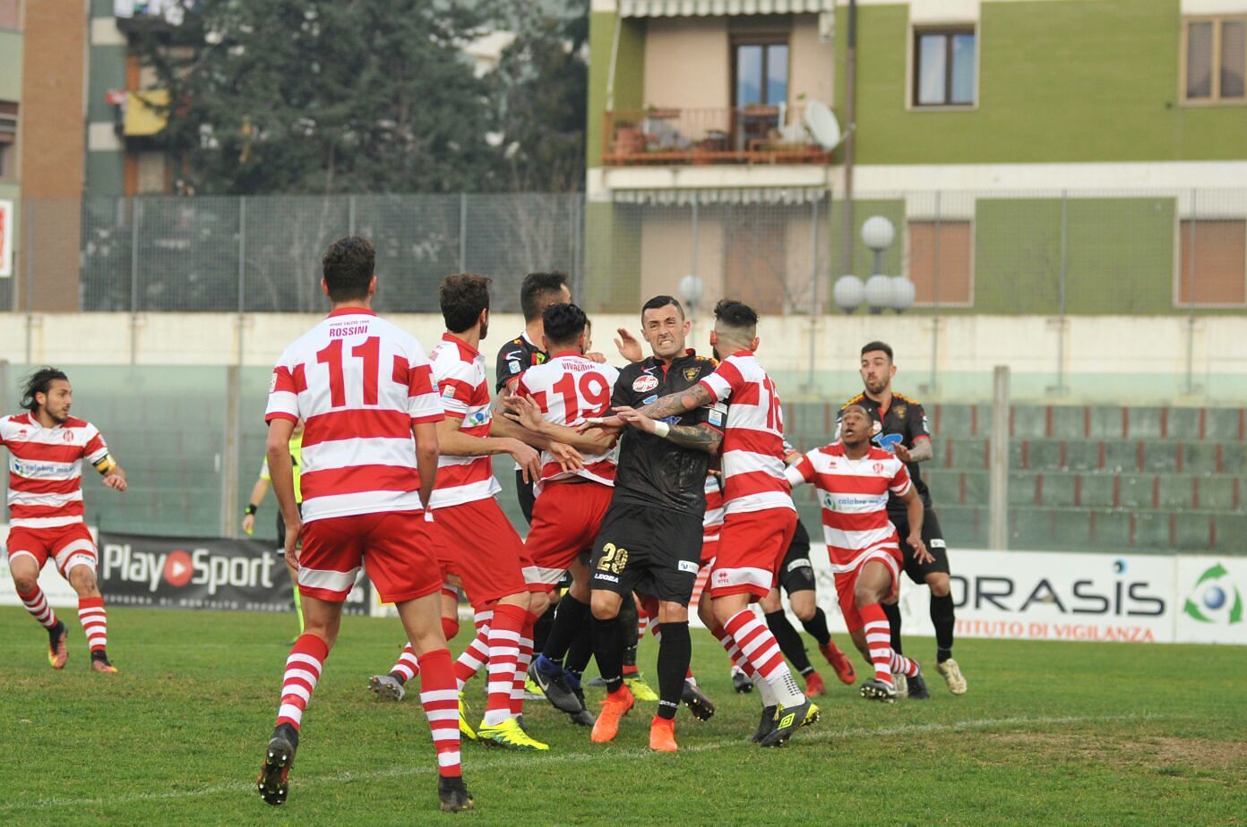 Perucchini, 6+ : tutto nella norma per l’estremo difensore giallorosso che nel primo tempo non deve impegnarsi più di tanto. Nel secondo tempo compie una bella parata su Rossini poco dopo la mezzora, fino a subire una “carica” in occasione del gol annullato ai padroni di casa, mai realmente pericolosi se non nel finale. Rimedia un’ammonizione.