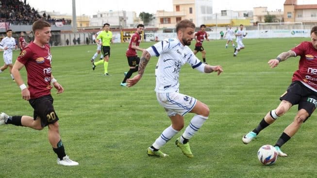 Termina in parità la sfida del “Giovanni Paolo II” tra Nardò e Martina. Succede tutto nel secondo tempo con i neretini che sbloccano il punteggio con Gennari ma subiscono il pareggio da parte di Tedesco dopo qualche minuto. Le due squadre si accontentano di un punto a testa ma si allontanano dalla capolista Team Altamura che prende il largo in classifica (+10) dopo il successo sull’Angri.