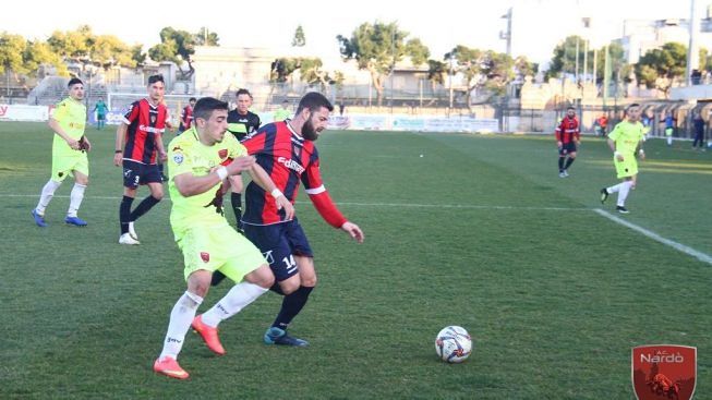 Nella ripresa il ritmo del gioco è più alto e la gara è più godibile con continui capovolgimenti di fronte, ma con il pallino del gioco quasi sempre in mano alla squadra rossoblu. Al 50’ Mingiano prova a impensierire Coletta con un diagonale in corsa ma la conclusione dell’attaccante granata termina di poco a lato. Dopo due minuti ci prova Esposito con un sinistro a giro che sfiora il palo alla destra di Mirarco. Al 64’ Aquaro nega il vantaggio agli ospiti respingendo sulla linea un tiro di Vanacore dopo un’amnesia difensiva tra Mirarco e Giglio. Il Nardò va in confusione, il Picerno preme sull’acceleratore e al 71’ passa in vantaggio: corner battuto dalla destra da Esposito e Caiazza in scivolata all’altezza del dischetto trova lo spiraglio giusto per battere l’incolpevole Mirarco. Dopo il vantaggio la squadra melandrina va in fase di gestione del possesso palla mentre i padroni di casa, senza valide alternative in panchina, fanno molta fatica in campo e non riescono a reagire alla manovra ospite. Poco Nardò e tanto Picerno, con la squadra di Giacomarro sempre rivolta all’attacco e così al termine dei cinque minuti di recupero arriva il raddoppio. Inesauribile Kosovan che all’ultimo respiro parte in contropiede, palla al limite per Santaniello sulla sinistra, che appena entrato in area batte Mirarco.