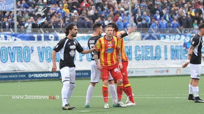 IL PARI DEL LECCE. Al 43mo il Lecce, però, ristabilisce la parità. Lepore prende palla dal limite e tira, la sfera attraversa tutta l'area senza che nessuno intervenga e si insacca in rete. È questa l'ultima nazione del primo tempo che termina senza alcun recupero. Un bel Lecce quello visto nella prima frazione che ha attaccato per quasi tutto l'arco dei 45minuti iniziali, ma che sul più bello è stato immeritatamente punito. Ciononostante i giallorossi hanno avuto la forza di reagire immediatamente e trovare pochissimo tempo dopo il pari.