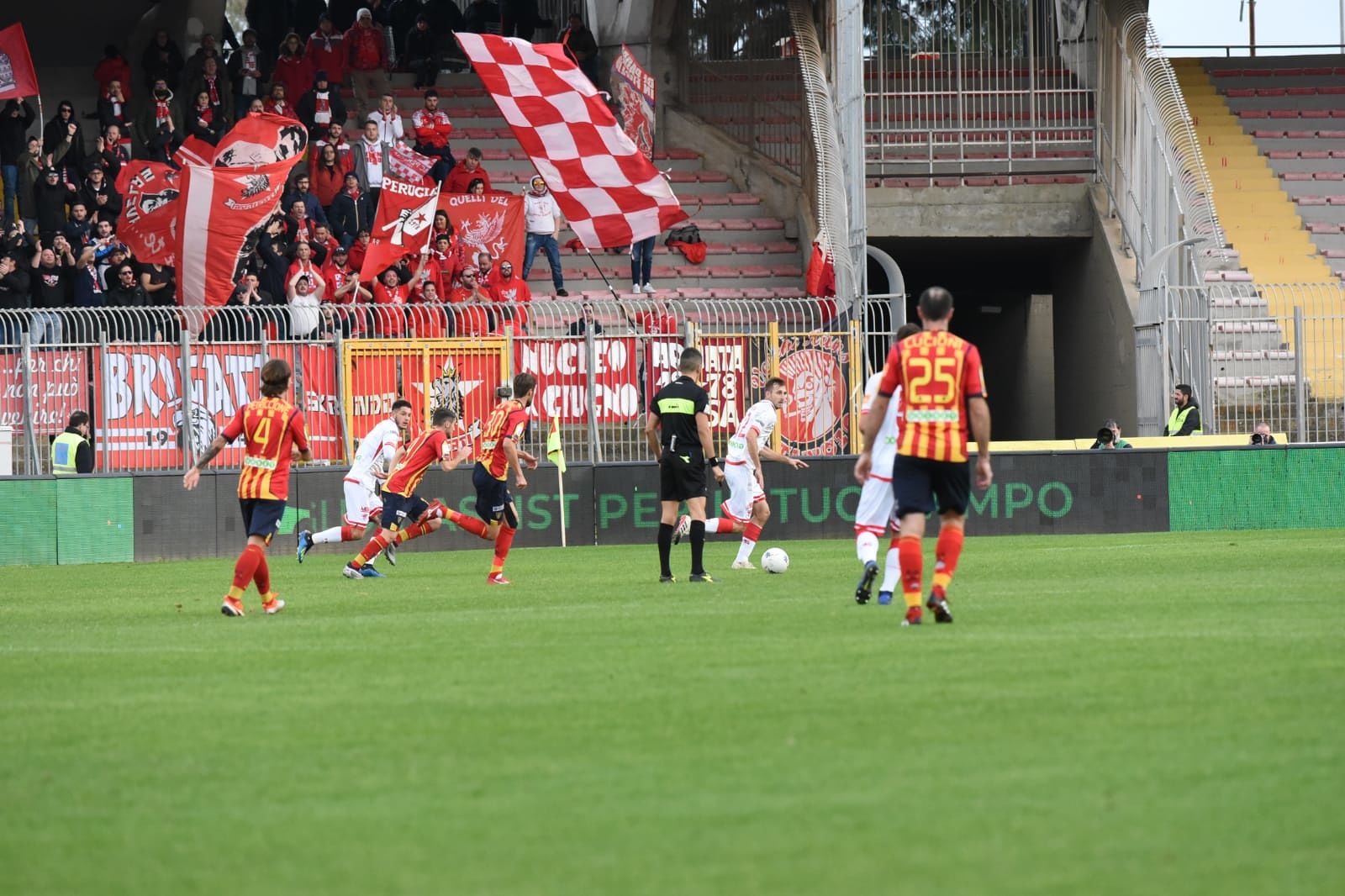 Il Lecce preme sull’acceleratore e prende in mano il pallino del gioco ma al 23esimo rischia grosso: una brutta palla persa sulla propria trequarti da Meccariello innesca la ripartenza di Vido e Melchiorri, due contro uno con Lucioni unico baluardo, tiro del numero 11 perugino che però la alza sulla traversa. Che brivido.