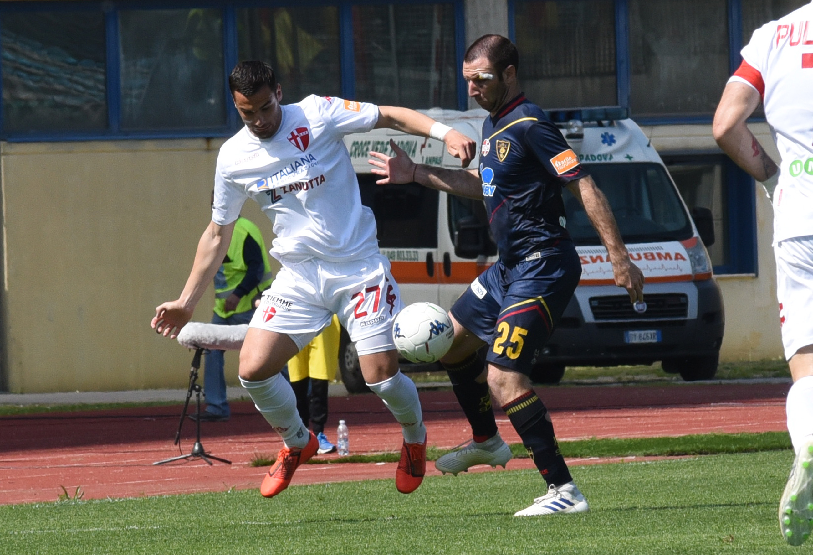 Al 74mo i giallorossi accorciano le distanze. Retropassaggio per il portiere Minelli, ma bomber La Mantia riesce a rubargli palla, l’estremo difensore biancoscudato altro non può fare che abbatterlo e per il direttore di gara è calcio di rigore. Sul dischetto si presenta capitan Mancosu che spiazza il portiere e accorcia le distanze.