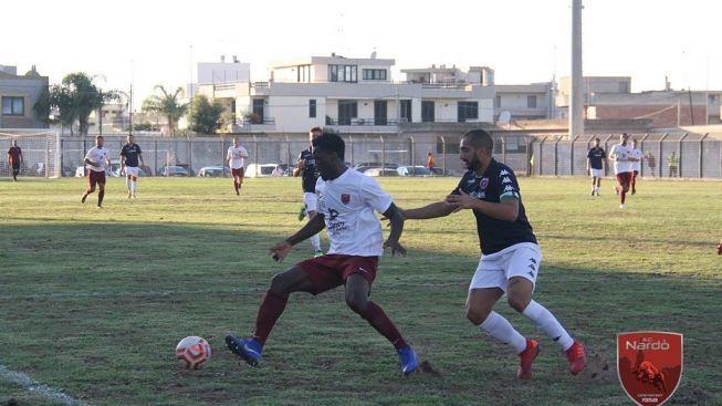 Il primo tempo regala poche emozioni con il Taranto costantemente in proiezione offensiva e il Nardò attento e ordinato in difesa. La prima occasione è di marca ospite e capita al 23’ sui piedi di Mengoli ma il bolide del centrocampista granata è respinto a mani aperte da Giappone. Il Taranto si rende pericoloso solo al 40’ con Favetta che, servito ottimamente al centro dell’area da Galdean, esplode il destro che impatta violentemente sul palo. La prima frazione si chiude con il risultato fermo sul pareggio a reti inviolate.