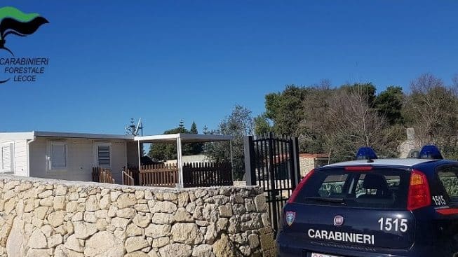 La scoperta a opera dei Carabinieri Forestali del Nucleo di Otranto nella campagne di Giurdignano. Deferiti il proprietario, il titolare della ditta e il direttore dei lavori