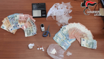 Cronaca / 16 Aprile 2024 12:59 Al termine della perquisizione ‘spuntano’ oltre 1 kg di droga e 22mila euro in contanti, arrestate due persone La scoperta a Porto Cesareo a opera dei Carabinieri dell’Arma. In due distinte abitazioni trovati hashish, marijuana e cocaina Di Redazione