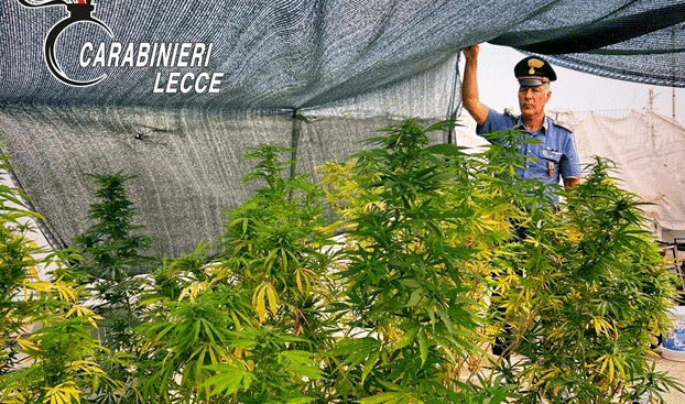 Durante la perquisizione, i militari dell’Arma hanno 40 piante, alte da uno a un metro e settanta, ben curate e nascoste alla vista con teli frangivento