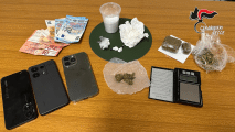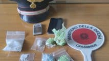 Inoltre, gli agenti hanno trovato due bilancini di precisione, materiale per il confezionamento, una cartuccia inesplosa calibro 9x21 winchester e un biglietto sul quale era stata riportata una probabile contabilità di attività di spaccio.