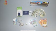 A seguito della perquisizione personale, gli agenti hanno trovato due involucri contenenti cocaina, all’interno di due calzini, dentro un cassetto del comodino