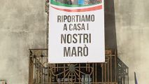Sulla facciata della sede del Comune di Nociglia, ecco uno striscione dal messaggio diretto:'Riportiamo a casa i nostri Marò'. Il sindaco Martella:'Lo toglieremo solo quando i nostri connazionali riabbracceranno le loro famiglie!'