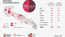 In sette giorni in Puglia 47 nuovi casi con gli attuali positivi tornati a superare quota cento. I decessi restano al minino, ma frenano anche le guarigioni.