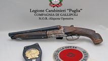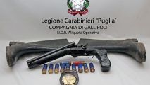 Carlo Minonni, 39enne di Alezio, volto già noto, è finito ai domiciliari con l'accusa di detenzione di arma clandestina e ricettazione. Fermato per un normale controllo, sentendosi alle strette si è 'sfogato' con i militari confessando di avere in casa un fucile a canne mozze.