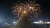 Turisti e fedeli sfidano il maltempo: spettacolare accensione della Fòcara di Novoli 2016