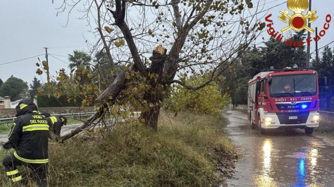 Le condizioni atmosferiche hanno provocato, in tutta la Provincia di Lecce, la caduta di alberi sulle strade, di pali delle linee aeree, telefoniche, elettriche e di illuminazione pubblica