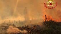 Fiamme alte fino a 5 metri e uno scenario marziano hanno caratterizzato la giornata in agro di Vignacastrisi, a ridosso della nota discoteca Blubay. Lavoro difficile per i vigili del fuoco