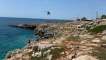 Un imprenditore 61enne di Gagliano del Capo, caduto dalla scogliera di Santa Maria di Leuca, è stato soccorso con un aereo dei Vigili del Fuoco. Impossibile raggiungerlo via mare o via terra.