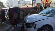 Una squadra dei Vigili del Fuoco del Comando Provinciale di Lecce è dovuta intervenire in via Trieste dove erano rimaste coivolte tre vetture dopo un violento impatto
