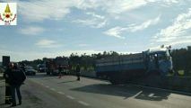 Scoppia una ruota e il camion si ribalta, tragedia sfiorata sulla statale 101