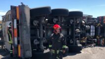 Il mezzo pesante si è ribaltato sulla carreggiata allo svincolo per la tangenziale. Sul posto i Vigili del Fuoco che stanno presidiando la zona in attesa del travaso del carburante.