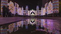 La capitale delle luminarie, protagonista di un simbolico “gemellaggio di luci” con Bologna, veste il Parco del cibo più grande al mondo con le sue imponenti architetture luminose.