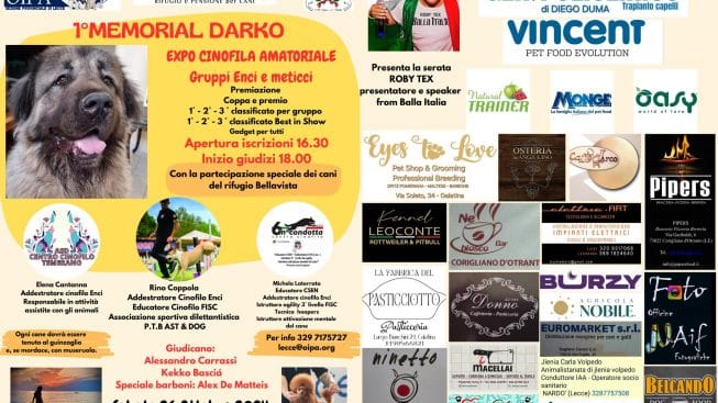 Organizzata dall'Associazione 'Diamoci una zampa' e patrocinata dal comune salentino la manifestazione si svolgerà il 19 giugno presso il Parco della Grottella. L'inziativa inserita tra gli eventi culturali e turistici di Copertino.