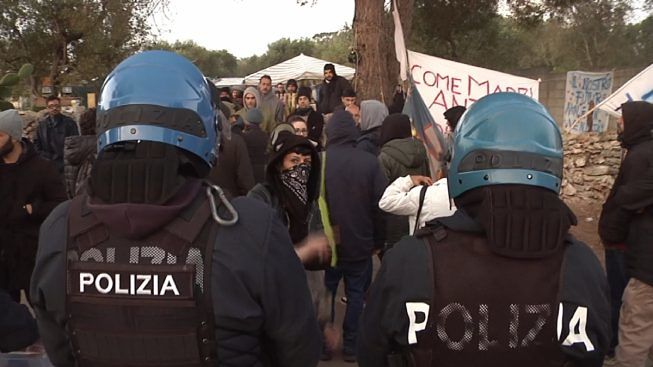 Secondo la versione della Questura sugli scontri avvenuti, questa mattina all'alba, nel cantiere di San Basilio sono stati i manifestanti No Tap a bloccare con chiodi e sassi le strade di accesso al cantiere. E sempre loro avrebbero aggredito gli agenti, costretti a chiudersi nelle auto di servizio per ragioni di sicurezza.