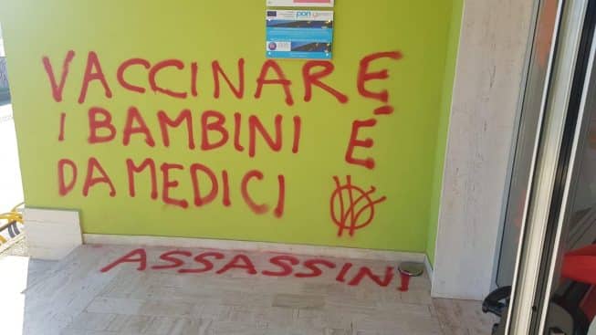 Cronaca / 21 Aprile 2023 11:28 Tornano le scritte “No Vax” sui muri delle scuole, nel mirino l’Istituto Montessori di Lequile I malviventi hanno agito nella notte. “Vaccinare i bambini è da medici assassini” la frase realizzata sulle pareti Di Redazione