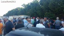 Sit-in di protesta di un centinaio di lavoratori del gruppo Palumbo sulla statale 275 Maglie-Leuca dopo il nulla di fatto del vertice di Roma tra Prefetto, Ministero e Anas che prende ancora tempo per decidere.