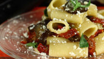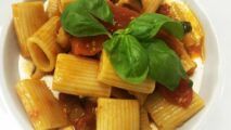 Le Mezze maniche al ragù di melanzane con crema di bufala sono un primo piatto semplice e genuino fatto di ingredienti freschi, come le melanzane, il basilico e la mozzarella di bufala, che esaltano i profumi e i colori del Mediterraneo.