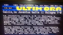 Sicuramente un errore nei tempi di pubblicazione della notizia, ma questa sera il televideo della rai ha pubblicato il risultato finale di Juventus - Bologna, in programma alle 18.30 di oggi, con quasi mezz'ora d'anticipo sulla fine della partita. Il fatto non è¨ sfuggito ad alcuni telespettatori che hanno prontamente documentato la vicenda come si