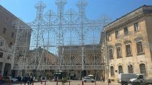 Sabato si svolgerà una cerimonia pubblica, alla presenza del sindaco e delle autorità, dopo la benedizione dell'Arcivescovo Michele Seccia, l'opera d'arte, sarà issata