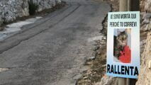 «Io sono morta qui perché correvi, rallenta», recita il cartello che la padrona di Principessa ha sistemato su una strada di Castrignano, dove non vengono rispettati i limiti di velocità.