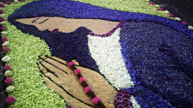 I meravigliosi tappeti floreali, realizzati rigorosamente con materiali naturali deteriorabili quali fiori, trucioli, sale, vegetali e tanti altri, sono ovviamente di carattere religioso e quest’anno in particolare sono dedicati al tema del dialogo interreligioso. L’evento di quest’anno che si terrà domenica 18 giugno si intitolerà “Sete di Pace. Religioni e culture in dialogo”, titolo mutuato dall’incontro interconfessionale organizzato dalla Comunità di Sant’Egidio ad Assisi lo scorso settembre.