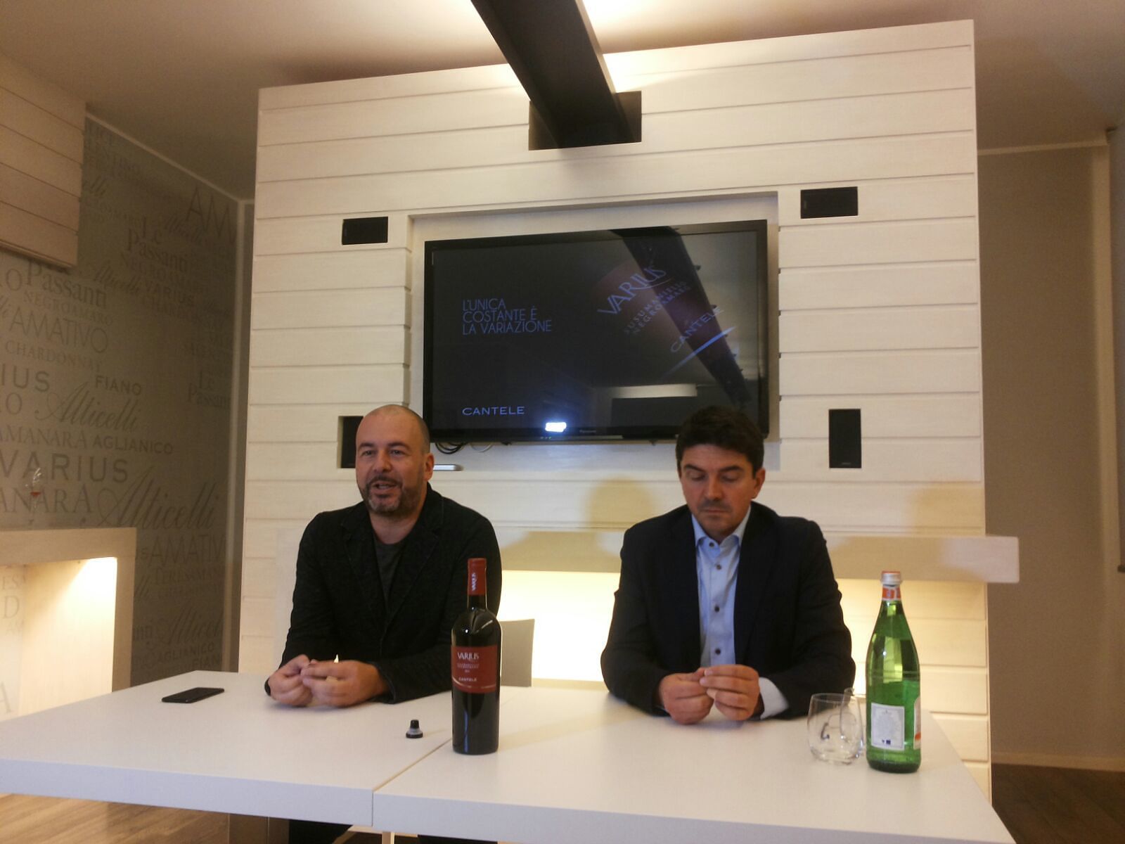 Per suggellare il ritorno del Varius, dopo due anni di assenza, i fratelli Gianni e Paolo Cantele hanno pensato di organizzare nella loro azienda un appuntamento ghiotto con i giornalisti delle principali testate locali di tv, stampa e web, allo scopo di rendere immediato il meccanismo sensoriale innescato dal vino e dalla buona cucina.