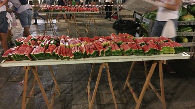 Trentasei anni dopo, nulla o quasi nulla è cambiato. La bellissima Piazza Indipendenza ha fatto da cornice all’edizione 2016 della sagra dell’anguria ospitando oltre duecento tavoli e circa mille sedie, messe gratuitamente a disposizione dagli organizzatori, dove salentini e turisti hanno potuto assaggiare i piatti tipici della cucina salentina, preparati dalle sapienti mani delle donne del paese e terminare la “cena” con una gustosissima fetta di anguria, offerta gratuitamente.