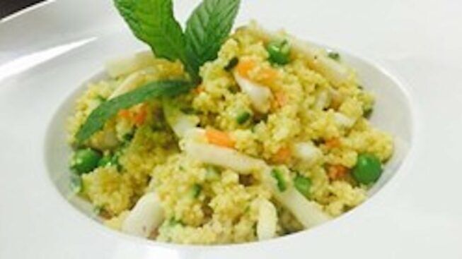 Il Cous cous profumato al curry con piselli verdi, seppia spadellata e verdurine croccanti è un piatto fresco, leggero e colorato e, soprattutto, facile da realizzare. Ideale per chi mangia spesso fuori, che sia per lavoro o per una gita fuori porta in quanto è molto gustoso anche freddo. È una ricetta di alta cucina, ma lo Chef Francesco Anglani ha rielaborato il piatto e lo ha reso alla portata di tutti i lettori di Leccenews24.it.