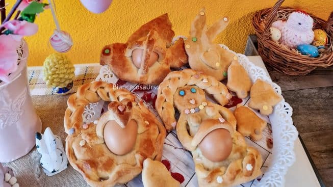 Pasqua si festeggia anche a tavola con i piatti della tradizione. Nei giorni di festa non può mancare l’agnello di pasta di mandorla, i quaresimali, i biscotti da inzuppare nel latte o per accompagnare un bicchiere di vino ‘concessi’ durante il periodo di digiuno o la Cuddhura, un tarallo intrecciato con un uovo al centro, mantenuto fermo da strisce di pasta. Un tempo, questo pane dolce o salato, dai tanti nomi, che cambiano da comune a comune, veniva regalato alle persone care. Un gesto di affetto che poteva avere tante forme diverse: un cuore, una colomba, una bambola, una campana, un cestino. «Lu caddhuzzu», a forma di gallo, era un cadeau per gli uomini, come simbolo di forza e virilità. La «Pupa» (bambola) veniva donata alle giovani donne in segno di bellezza e fertilità. «Lu core», il cuore, era il regalo dei fidanzati, come gesto d’amore. «Lu Panareddhu» (il cestino) veniva donato per augurare abbondanza.