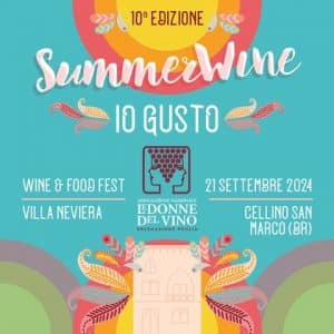 Dopo le passate edizioni, che hanno visto eventi nei diversi territori a vocazione enoica della regione e fortemente attrattivi per turisti, appassionati e operatori del settore wine&food, torna SummerWine 10^ ed. con il claim “IO GUSTO” e sarà ospitato sabato 21 settembre a Villa Neviera a Cellino San Marco, raffinata dimora storica immersa in un antico bosco, circondato da rigogliosi vigneti autoctoni, uliveti secolari, lecci e profumati agrumeti. Luogo ideale per ricreare un autentico villaggio del gusto e dove sarà possibile degustare tipiche specialità gastronomiche in perfetto abbinamento con i vini bianchi, rosati, rossi, dolci e bollicine delle Donne del Vino di Puglia, in un walk around davvero intrigante: oltre 50 etichette, una ricca carta vini per raccontare la produzione di una Puglia al femminile, da Nord a Sud, dalla Daunia fino al Salento.